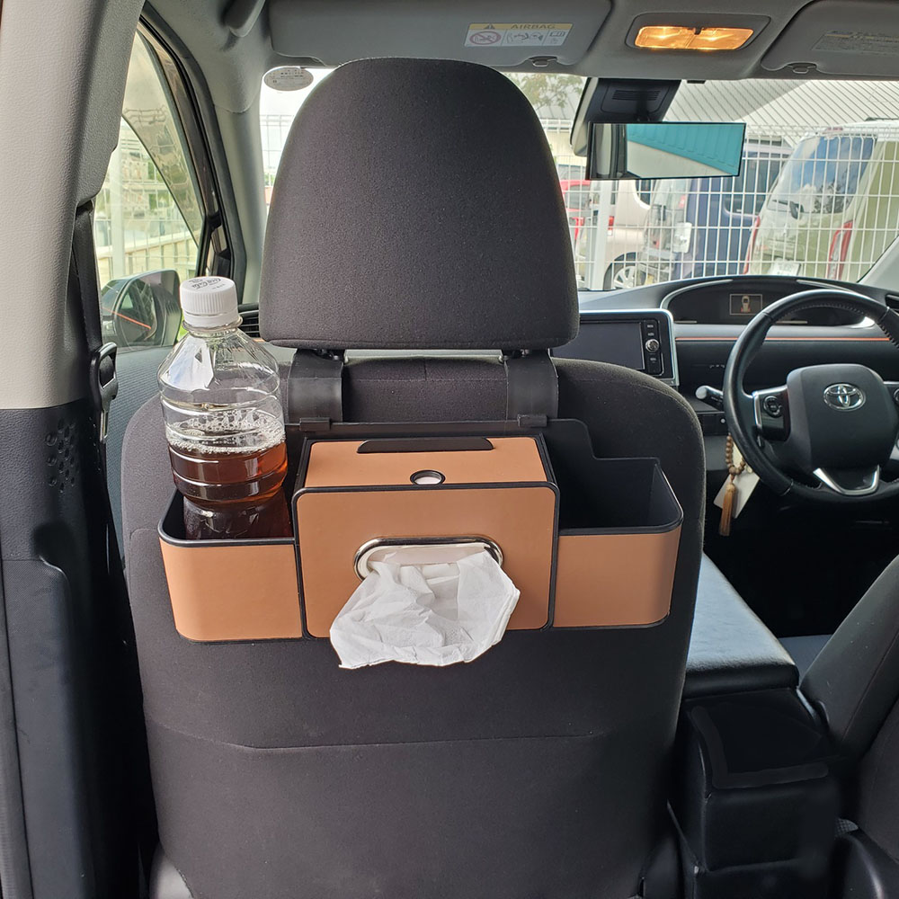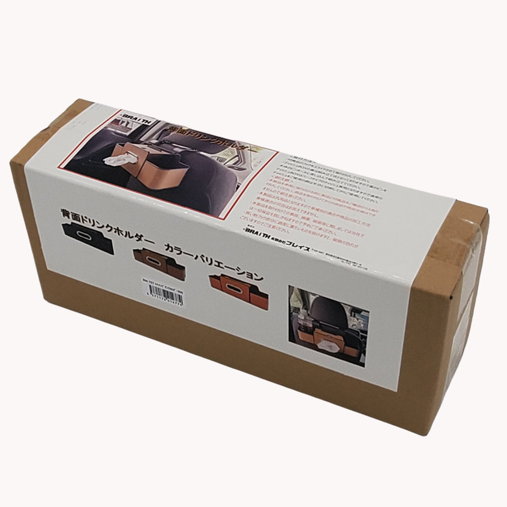 | 仕様 | 素材:ABS+PU 付属品:固定用フック パッケージサイズ:約 H145×W345×D93(mm) 重量:約0.5kg 適合:分割式のヘッドレスト車用 。 ハーフタイプのティッシュまたは、ポケットティッシュが入ります。買い物フック付き。 |